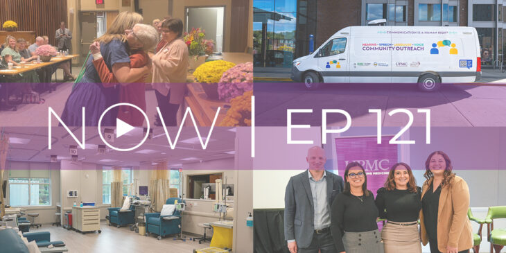 In Episode 121 of UPMC NOW, clinicians, patients and advocates introduced the Communication Van, a mobile clinic offering hearing, speech, language, and voice care in the community; UPMC Pinnacle Foundation and UPMC Neurological Institute hosted the first-ever Stroke Survivors Reunion; UPMC Hillman Cancer Center cut the ribbon on a newly renovated location in Washington, Pa. deepening its commitment to providing world-class cancer care close to home; and living kidney and liver donors were celebrated at UPMC Montefiore.