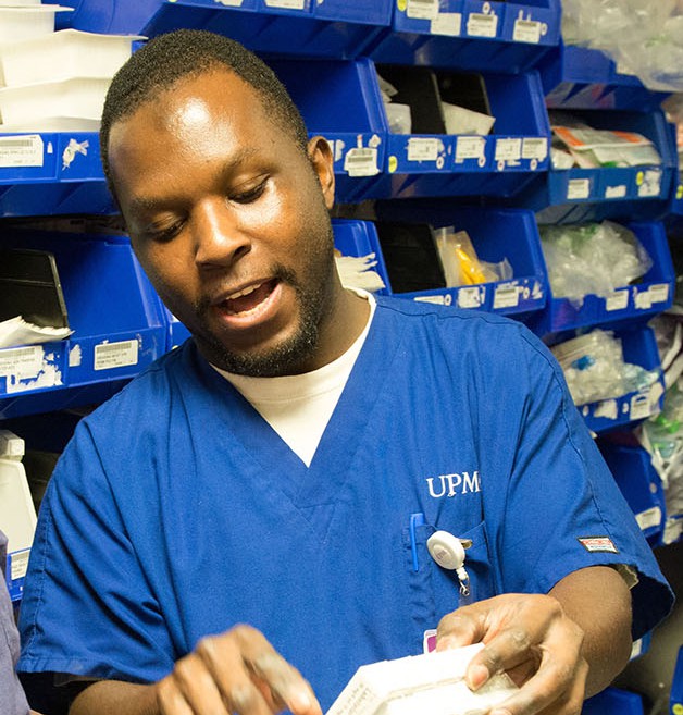 As part of UPMC Support Services Career Ladder program, Muya was permitted to spend a portion of his workday in the pharmacy over a period of several months to learn about the duties of a medication delivery assistant.