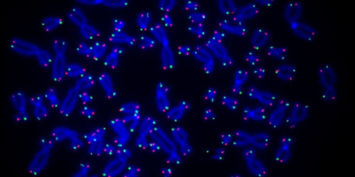 Chromosome from cancer cell with normal telomeres shown in red and green (left) and chromosome from cancer cell with loss of telomere stability due to lack of TRIM24 (right) (CREDIT: Kim et al. Molecular Cell (2025), 10.1016/j.molcel.2025.06.009).