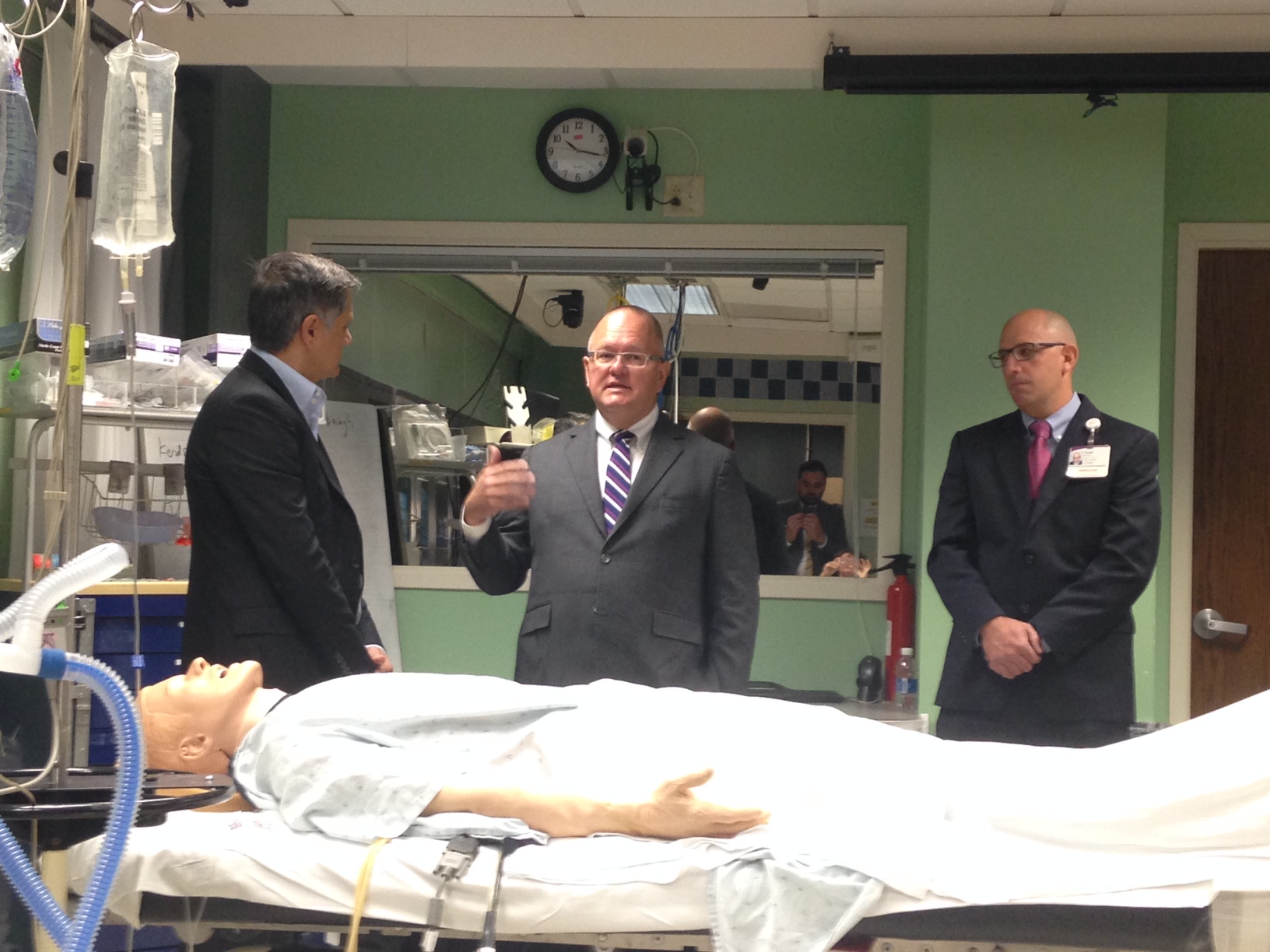 Last week, Paul Phrampus, M.D., medical director for patient safety at UPMC; Todd Pollock, director of quality at UPMC Presbyterian-Shadyside; and Joe Kiani, founder of the Patient Safety Movement Coalition, held a meeting to discuss the vital role UPMC and clinicians in Pittsburgh are playing in improving patient safety. They met at the Peter M. Winter Institute for Simulation, Education, and Research, which is designed as a hospital setting outfitted with realistic patient simulators, allowing UPMC clinicians to practice and improve their skills.